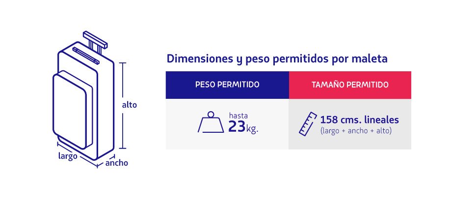 Puede variar, recuerda consultar con tu aerolínea.