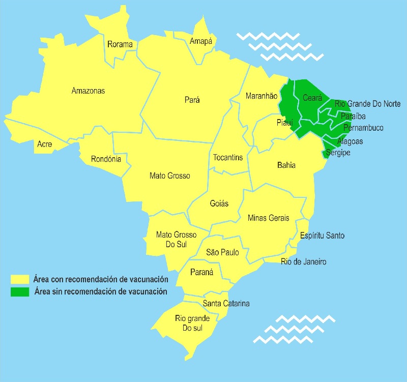 Zonas de Brasil donde se recomienda tener la vacuna.